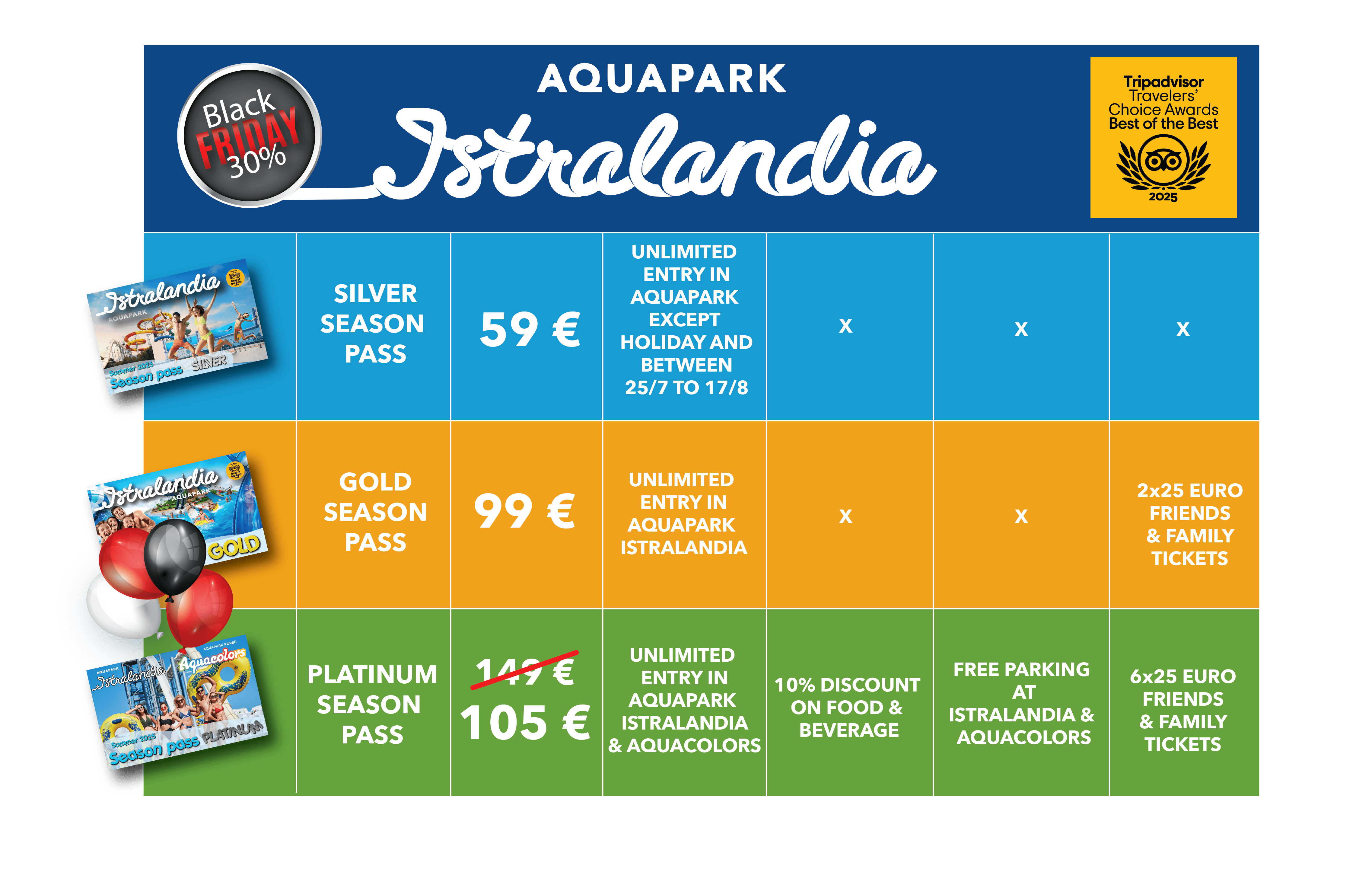 The best value pass | The ultimate pass, unlocking 12 months of fun across 2 parks – Aquacolors AND Istralandia! From 105€